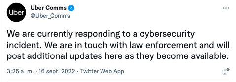 Uber ha confirmado que, el pasado 15 de septiembre, fue víctima de un hackeo que ha puesto en peligro la mayor parte de sus sistemas informáticos.